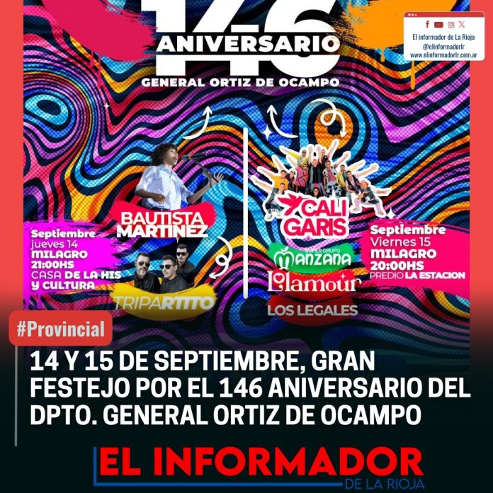 Inicio Local 14 Y 15 DE SEPTIEMBRE, GRAN FESTEJO POR EL 146 ANIVERSARIO DEL...Local14 Y 15 DE SEPTIEMBRE, GRAN FESTEJO POR EL 146 ANIVERSARIO DEL DPTO. GENERAL ORTÍZ DE OCAMPO septiembre 5, 2023FacebookTwitterPinterestVKWhatsApp Artículos relacionadosMás del autorEl Gobierno remarcó su compromiso vigente frente al terrorismo de EstadoEsta semana continúa el paro universitario por recomposición salarialLa provincia señaliza sitios de memoria y refuerza el compromiso con el Nunca MásDEJA UNA RESPUESTA Cancelar respuestaPor favor ingrese su comentario! Por favor ingrese su nombre aquí ¡Has introducido una dirección de correo electrónico incorrecta!Por favor ingrese su dirección de correo electrónico aquí Guardar mi nombre, correo electrónico y sitio web en este navegador la próxima vez que comente.