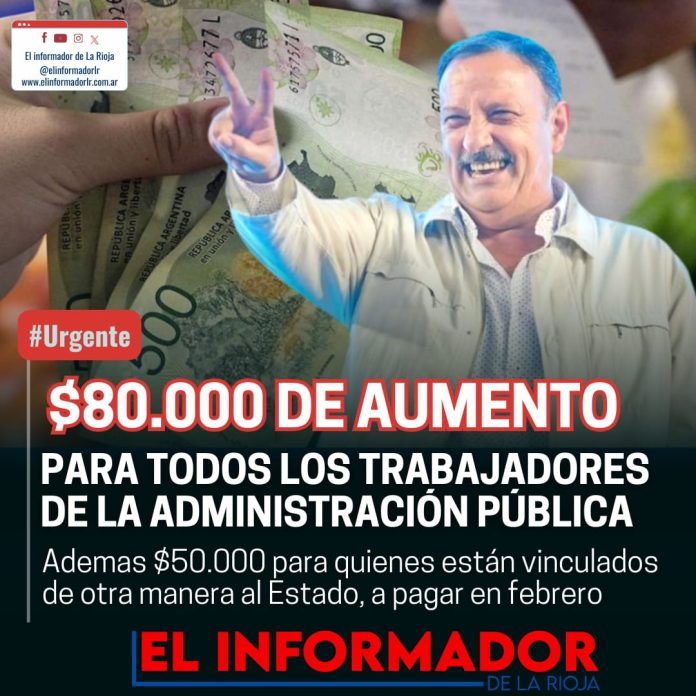 Inicio Destacadas $80.000 DE AUMENTO PARA TODOS LOS TRABAJADORES DE LA ADMINISTRACIÓN PÚBLICADestacadas$80.000 DE AUMENTO PARA TODOS LOS TRABAJADORES DE LA ADMINISTRACIÓN PÚBLICA enero 15, 2024FacebookTwitterPinterestVKWhatsApp Artículos relacionadosMás del autorFranco Colapinto traerá la Formula 1 a las calles de Buenos Aires con un Road Show en PalermoAfirman que Adorni compró el departamento de Caballito en U$S230 mil dólares con un préstamo de dos jubiladasHallan el cuerpo sin vida del jóven que cayó al dique de OltaDEJA UNA RESPUESTA Cancelar respuestaPor favor ingrese su comentario! Por favor ingrese su nombre aquí ¡Has introducido una dirección de correo electrónico incorrecta!Por favor ingrese su dirección de correo electrónico aquí Guardar mi nombre, correo electrónico y sitio web en este navegador la próxima vez que comente.