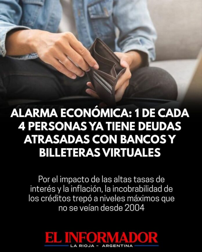 Inicio Destacadas Alarma económica: 1 de cada 4 personas ya tiene deudas atrasadas con...DestacadasAlarma económica: 1 de cada 4 personas ya tiene deudas atrasadas con bancos y billeteras virtuales febrero 24, 2026FacebookTwitterPinterestVKWhatsApp Artículos relacionadosMás del autorRecortes en el servicio Metereológico Nacional: Confirman más de 140 despidos en el sectorEl Director de PAMI negó una crisis en el organismo y aseguró que los pagos «se estan ordenando»Golpe al narcotráfico en Chilecito: 8 demorados en el operativo «guanchineros»DEJA UNA RESPUESTA Cancelar respuestaPor favor ingrese su comentario! Por favor ingrese su nombre aquí ¡Has introducido una dirección de correo electrónico incorrecta!Por favor ingrese su dirección de correo electrónico aquí Guardar mi nombre, correo electrónico y sitio web en este navegador la próxima vez que comente.