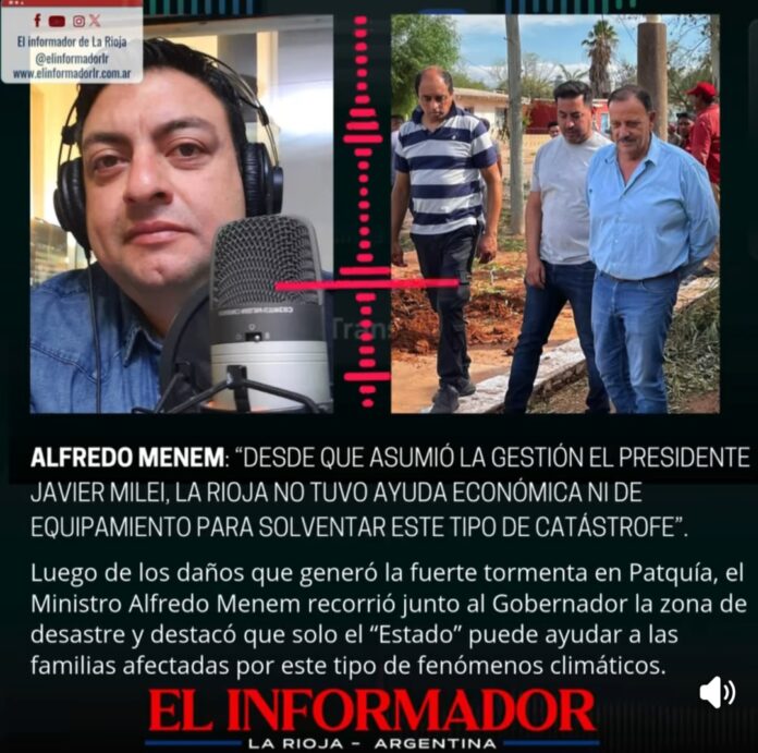 Inicio Local Alfrefo Menem: «Desde que asumió la gestión el Presidente Javier Milei, La...LocalAlfrefo Menem: «Desde que asumió la gestión el Presidente Javier Milei, La Rioja no tuvo ayuda económica ni de equipamiento para solventar este tipo de catástrofes» febrero 26, 2025FacebookTwitterPinterestVKWhatsApp Artículos relacionadosMás del autorLa Rioja lidera la industria minera con perspectiva de géneroChilecito: Imponen el narcotest para funcionarios municipales y concejalesConfirman el adelanto de pago de sueldos para estatales a partir del 31 de marzoDEJA UNA RESPUESTA Cancelar respuestaPor favor ingrese su comentario! Por favor ingrese su nombre aquí ¡Has introducido una dirección de correo electrónico incorrecta!Por favor ingrese su dirección de correo electrónico aquí Guardar mi nombre, correo electrónico y sitio web en este navegador la próxima vez que comente.