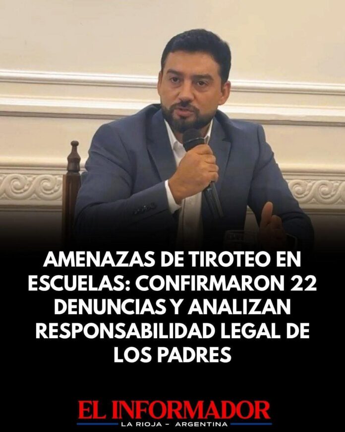 Inicio Local Amenasas de tiroteo en escuelas: Confirman 22 denuncias y analizan responsabilidad legal...LocalAmenasas de tiroteo en escuelas: Confirman 22 denuncias y analizan responsabilidad legal de los padres abril 21, 2026FacebookTwitterPinterestVKWhatsApp Artículos relacionadosMás del autorEl Rally riojano pone segunda en Tama el próximo 16 y 17 de MayoAvanzan con un protocolo para prevenir y abordar situaciones de violencia escolarEscándalo en el Colegio de Farmacéuticos de La Rioja: Detuvieron al ex presidente Jorge BordónDEJA UNA RESPUESTA Cancelar respuestaPor favor ingrese su comentario! Por favor ingrese su nombre aquí ¡Has introducido una dirección de correo electrónico incorrecta!Por favor ingrese su dirección de correo electrónico aquí Guardar mi nombre, correo electrónico y sitio web en este navegador la próxima vez que comente.
