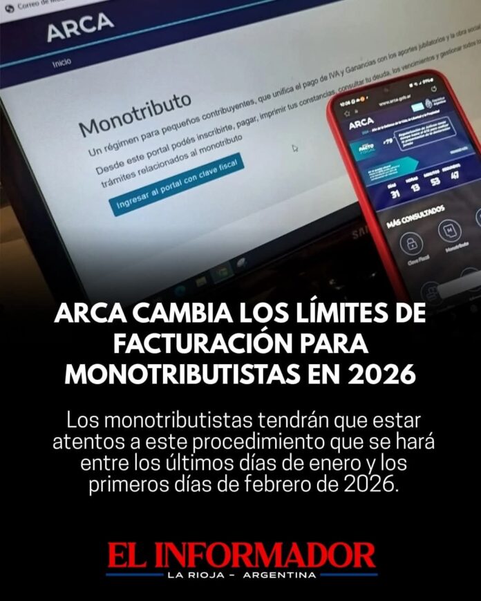 NacionalActualizado: diciembre 17, 2025ARCA cambia los límites de facturación para monotributistas para el 2026diciembre 17, 2025CuotaFacebookTwitterPinterestVKWhatsApp Mas NoticiasLocalSaul Narvaez - febrero 4, 2026Cronograma de pago: Haberes eneroLocalSaul Narvaez - febrero 3, 2026Cronograma de pago: Haberes eneroLocalSaul Narvaez - febrero 3, 2026Cronograma de pago: Haberes eneroCuotaFacebookTwitterPinterestVKWhatsApp Artículo anteriorHilados cierra en La Rioja su planta de confección: Despide a 70 trabajadoresArtículo siguienteAllanaron por acoso digital e injurias a sindicalista de UNLaR, ex funcionaria del Rector Quiroga- Advertisement - DEJA UNA RESPUESTA Cancelar respuestaComentario:Por favor ingrese su comentario! Nombre:*Por favor ingrese su nombre aquí Correo electrónico:*¡Has introducido una dirección de correo electrónico incorrecta!Por favor ingrese su dirección de correo electrónico aquí Sitio web: Guardar mi nombre, correo electrónico y sitio web en este navegador la próxima vez que comente. Ultimas noticiasLocalSaul Narvaez - febrero 4, 2026Cronograma de pago: Haberes enero LocalCronograma de pago: Haberes enero Saul Narvaez - febrero 3, 2026 LocalCronograma de pago: Haberes enero Saul Narvaez - febrero 3, 2026 LocalIniciarán obras con fondos provinciales en el Departamento Ángel Vicente Peñaloza Saul Narvaez - enero 31, 2026 LocalRicardo Quintela: «La formación de jóvenes líderes es fundamental para el desarrollo de nuestra provincia» Saul Narvaez - enero 31, 2026 Esto tambien te puede interesarCambio climático y temporal: El país bajo eventos extremos cada vez más frecuentes Nacional Saul Narvaez - enero 31, 2026 Milei en Mar del Plata caminó entre la militancia: «Estamos cumpliendo todas las promesas de campaña» Destacadas Saul Narvaez - enero 27, 2026 Expulsado por cantar con Milei Nacional Saul Narvaez - enero 27, 2026 Consumo: Las ventas en supermercados bajaron un 3,8% en noviembre y tuvieron su peor caída desde 2023 Destacadas Saul Narvaez - enero 25, 2026 - Advertisement -