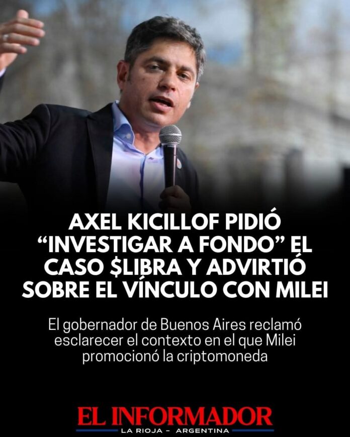Inicio Destacadas Axel Kicillof pidió «investigar a fondo» el caso $Libra y advirtió sobre...DestacadasAxel Kicillof pidió «investigar a fondo» el caso $Libra y advirtió sobre el vínculo con Milei noviembre 20, 2025FacebookTwitterPinterestVKWhatsApp Artículos relacionadosMás del autorLa actividad económica no repunta: En febrero cayó un 2,6% mensual y tuvo su peor caída desde diciembre de 2023¿Vivir para pagar? La deuda no bancaria ya asfixia a 6 de cada 10 hogaresAlberto Fernández, a un paso del juicio oral por violencia de género contra Fabiola YañezDEJA UNA RESPUESTA Cancelar respuestaPor favor ingrese su comentario! Por favor ingrese su nombre aquí ¡Has introducido una dirección de correo electrónico incorrecta!Por favor ingrese su dirección de correo electrónico aquí Guardar mi nombre, correo electrónico y sitio web en este navegador la próxima vez que comente.