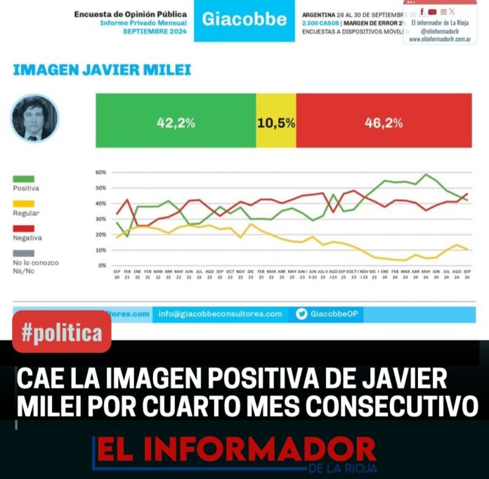 Inicio Destacadas Cae la imágen positiva de Javier Milei por cuarto mes consecutivoDestacadasCae la imágen positiva de Javier Milei por cuarto mes consecutivo octubre 7, 2024FacebookTwitterPinterestVKWhatsApp Artículos relacionadosMás del autorFranco Colapinto traerá la Formula 1 a las calles de Buenos Aires con un Road Show en PalermoAfirman que Adorni compró el departamento de Caballito en U$S230 mil dólares con un préstamo de dos jubiladasHallan el cuerpo sin vida del jóven que cayó al dique de OltaDEJA UNA RESPUESTA Cancelar respuestaPor favor ingrese su comentario! Por favor ingrese su nombre aquí ¡Has introducido una dirección de correo electrónico incorrecta!Por favor ingrese su dirección de correo electrónico aquí Guardar mi nombre, correo electrónico y sitio web en este navegador la próxima vez que comente.