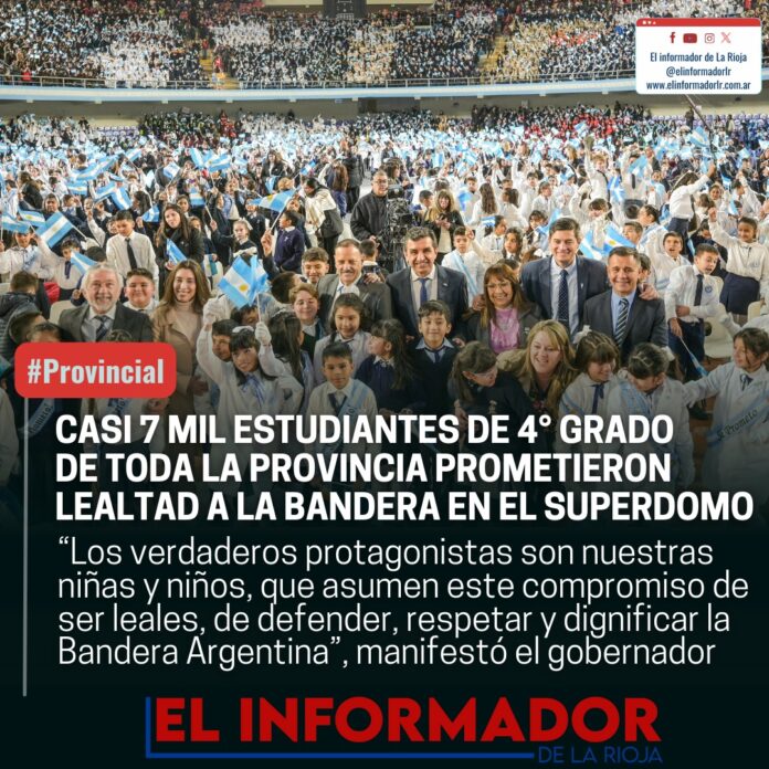 LocalActualizado: junio 26, 2024CASI 7 MIL ESTUDIANTES DE 4° GRADO DE TODA LA PROVINCIA PROMETIERON LEALTAD A LA BANDERA EN EL SUPERDOMOjunio 26, 2024CuotaFacebookTwitterPinterestVKWhatsApp Mas NoticiasLocalSaul Narvaez - marzo 3, 2026Cronograma de pago: Haberes FebreroNacionalSaul Narvaez - marzo 3, 2026El Senador Pagotto y su hijo asesor con sueldo de 3, 5 millones en el SenadoNacionalSaul Narvaez - marzo 3, 2026Gabriela Pedrali: «Desde que asumió Milei, más de 4.000 riojanos perdieron su trabajo»CuotaFacebookTwitterPinterestVKWhatsApp Artículo anteriorREACTIVACIÓN DE LA OBRA PÚBLICA: ESTE VIERNES SE FIRMARÁ EL CONVENIO ENTRE NACIÓN Y PROVINCIAArtículo siguienteQUINTELA: «QUEREMOS QUE LA GENTE ESTÉ UN POQUITO MEJOR»- Advertisement - DEJA UNA RESPUESTA Cancelar respuestaComentario:Por favor ingrese su comentario! Nombre:*Por favor ingrese su nombre aquí Correo electrónico:*¡Has introducido una dirección de correo electrónico incorrecta!Por favor ingrese su dirección de correo electrónico aquí Sitio web: Guardar mi nombre, correo electrónico y sitio web en este navegador la próxima vez que comente. Ultimas noticiasLocalSaul Narvaez - marzo 3, 2026Cronograma de pago: Haberes Febrero NacionalEl Senador Pagotto y su hijo asesor con sueldo de 3, 5 millones en el Senado Saul Narvaez - marzo 3, 2026 NacionalGabriela Pedrali: «Desde que asumió Milei, más de 4.000 riojanos perdieron su trabajo» Saul Narvaez - marzo 3, 2026 LocalLa Rioja fortalece su agenda minera internacional en la PDAC 2026 Saul Narvaez - marzo 3, 2026 LocalLa Cruz de los Mártires ya puede visitarse en la Legislatura Saul Narvaez - marzo 2, 2026 Esto tambien te puede interesarCronograma de pago: Haberes Febrero Local Saul Narvaez - marzo 3, 2026 La Rioja fortalece su agenda minera internacional en la PDAC 2026 Local Saul Narvaez - marzo 3, 2026 La Cruz de los Mártires ya puede visitarse en la Legislatura Local Saul Narvaez - marzo 2, 2026 El Festival de la Chaya ya tiene su documental Local Saul Narvaez - febrero 28, 2026 - Advertisement -