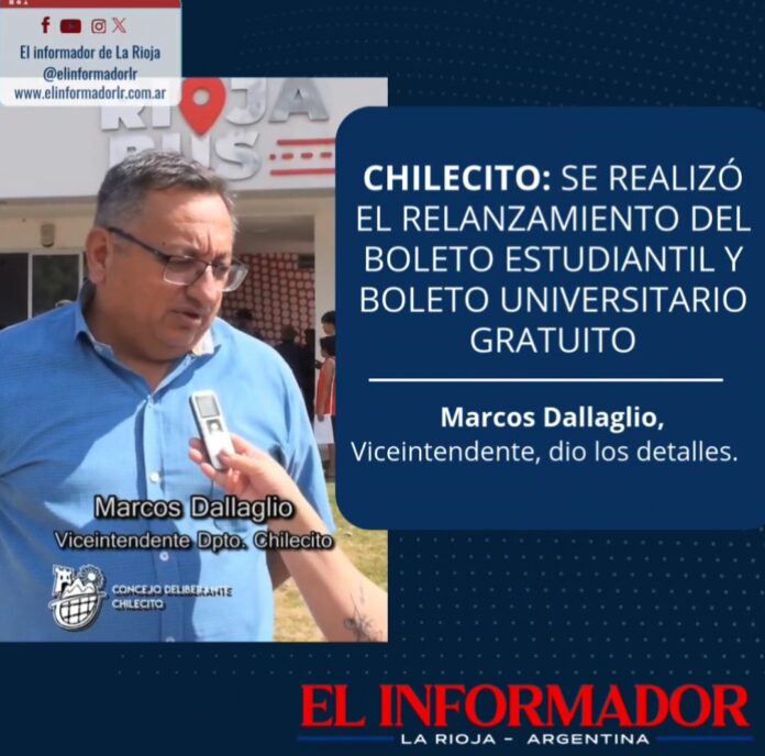 Inicio Local Chilecito: se realizó el lanzamiento del boleto estudiantil y boleto universitario gratuitoLocalChilecito: se realizó el lanzamiento del boleto estudiantil y boleto universitario gratuito marzo 8, 2025FacebookTwitterPinterestVKWhatsApp Artículos relacionadosMás del autorEncontraron a un hombre de 86 años que llevaba meses muerto en su domicilio en Barrio FerroviarioLa Rioja homenajeó a los veteranos de Malvinas con el tradicional desfile del 2 de abrilEl COE inicia el operativo de Semana Santa en el Señor de la PeñaDEJA UNA RESPUESTA Cancelar respuestaPor favor ingrese su comentario! Por favor ingrese su nombre aquí ¡Has introducido una dirección de correo electrónico incorrecta!Por favor ingrese su dirección de correo electrónico aquí Guardar mi nombre, correo electrónico y sitio web en este navegador la próxima vez que comente.