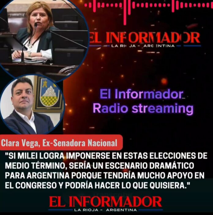 Inicio Política Clara Vega: «Si Milei logra imponerse en estas elecciones de medio término,...PolíticaClara Vega: «Si Milei logra imponerse en estas elecciones de medio término, sería un escenario dramático para Argentina porque tendría mucho apoyo en el Congreso y podría hacer lo que quiera» marzo 14, 2025FacebookTwitterPinterestVKWhatsApp Artículos relacionadosMás del autorSegún la escribana, Adorni compró el departamento de Caballito en 12 cuotas y sin interesesJavier Milei volvió a atacar a los periodistas y aseguró que «la motosierra sigue encendida»Ley de Glaciares: La Libertad Avanza y aliados convirtieron en Ley la reforma de forma contundenteDEJA UNA RESPUESTA Cancelar respuestaPor favor ingrese su comentario! Por favor ingrese su nombre aquí ¡Has introducido una dirección de correo electrónico incorrecta!Por favor ingrese su dirección de correo electrónico aquí Guardar mi nombre, correo electrónico y sitio web en este navegador la próxima vez que comente.