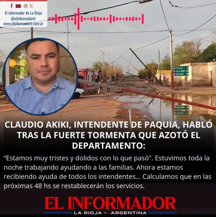Inicio Local Claudio Akiki intendente de Patquía, habló tras la fuerte tormenta que azotó...LocalClaudio Akiki intendente de Patquía, habló tras la fuerte tormenta que azotó el departamento febrero 25, 2025FacebookTwitterPinterestVKWhatsApp Artículos relacionadosMás del autorLa Rioja lidera la industria minera con perspectiva de géneroChilecito: Imponen el narcotest para funcionarios municipales y concejalesConfirman el adelanto de pago de sueldos para estatales a partir del 31 de marzoDEJA UNA RESPUESTA Cancelar respuestaPor favor ingrese su comentario! Por favor ingrese su nombre aquí ¡Has introducido una dirección de correo electrónico incorrecta!Por favor ingrese su dirección de correo electrónico aquí Guardar mi nombre, correo electrónico y sitio web en este navegador la próxima vez que comente.