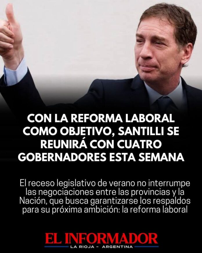 Inicio Destacadas Con la reforma laboral como objetivo, Santilli se reunirá con cuatro gobernadores...DestacadasCon la reforma laboral como objetivo, Santilli se reunirá con cuatro gobernadores esta semana enero 12, 2026FacebookTwitterPinterestVKWhatsApp Artículos relacionadosMás del autorLa Rioja firmó un convenio con la empresa China Hainan Trailblazer para avanzar en proyectos minerosSe perdieron casi 80 mil puestos de trabajo en la industria desde la asunción de MileiCayó con fuerza la confianza en el gobierno en abril: El nivel más bajo en toda la gestión de MileiDEJA UNA RESPUESTA Cancelar respuestaPor favor ingrese su comentario! Por favor ingrese su nombre aquí ¡Has introducido una dirección de correo electrónico incorrecta!Por favor ingrese su dirección de correo electrónico aquí Guardar mi nombre, correo electrónico y sitio web en este navegador la próxima vez que comente.