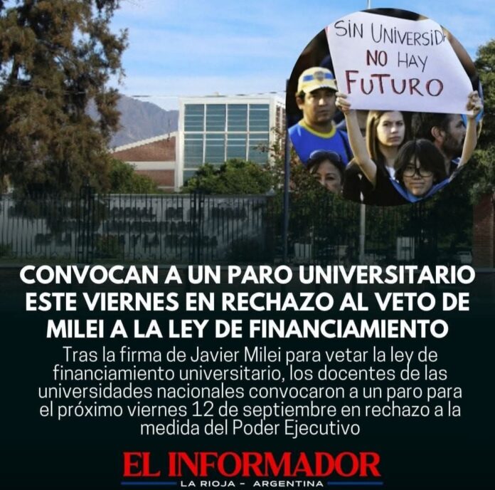Inicio Nacional Convocan a un paro universitario este viernes en rechazo al veto de...NacionalConvocan a un paro universitario este viernes en rechazo al veto de Milei a la Ley de Financiamiento septiembre 11, 2025FacebookTwitterPinterestVKWhatsApp Artículos relacionadosMás del autorATE anunció un paro nacional para el 21 de abril en reclamo de aumento salarialTere Madera sobre Milei: «No puede haber respeto quien gobierna con odio e intolerancia»Una multitud participó de la vigilia en honor a los Héroes de MalvinasDEJA UNA RESPUESTA Cancelar respuestaPor favor ingrese su comentario! Por favor ingrese su nombre aquí ¡Has introducido una dirección de correo electrónico incorrecta!Por favor ingrese su dirección de correo electrónico aquí Guardar mi nombre, correo electrónico y sitio web en este navegador la próxima vez que comente.
