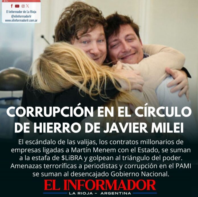 Inicio Destacadas Corrupción en el círculo de hierro de Javier MileiDestacadasCorrupción en el círculo de hierro de Javier Milei julio 19, 2025FacebookTwitterPinterestVKWhatsApp Artículos relacionadosMás del autorDetuvieron al hijastro del hombre de 88 años que fue encontrado sin vida en su casaYPF estabiliza el precio de la nafta por 45 días: No trasladará la suba del petróleoLa pobreza cayó en el segundo semestre y cerró el 2025 en 28,2%DEJA UNA RESPUESTA Cancelar respuestaPor favor ingrese su comentario! Por favor ingrese su nombre aquí ¡Has introducido una dirección de correo electrónico incorrecta!Por favor ingrese su dirección de correo electrónico aquí Guardar mi nombre, correo electrónico y sitio web en este navegador la próxima vez que comente.