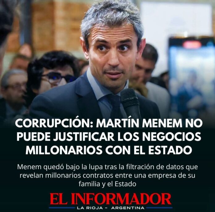 Inicio Destacadas Corrupción: Martín Menem no puede justificar los negocios millonarios con el EstadoDestacadasCorrupción: Martín Menem no puede justificar los negocios millonarios con el Estado julio 18, 2025FacebookTwitterPinterestVKWhatsApp Artículos relacionadosMás del autorDetuvieron al hijastro del hombre de 88 años que fue encontrado sin vida en su casaYPF estabiliza el precio de la nafta por 45 días: No trasladará la suba del petróleoLa pobreza cayó en el segundo semestre y cerró el 2025 en 28,2%DEJA UNA RESPUESTA Cancelar respuestaPor favor ingrese su comentario! Por favor ingrese su nombre aquí ¡Has introducido una dirección de correo electrónico incorrecta!Por favor ingrese su dirección de correo electrónico aquí Guardar mi nombre, correo electrónico y sitio web en este navegador la próxima vez que comente.