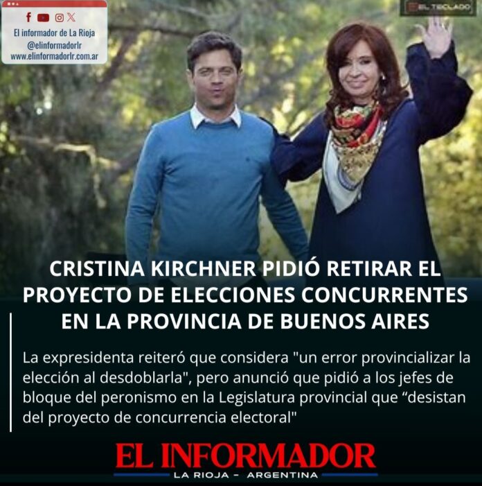 Inicio Destacadas Cristina Kirchner pidió retirar el proyecto de elecciones recurrentes en la provincia...DestacadasCristina Kirchner pidió retirar el proyecto de elecciones recurrentes en la provincia de Buenos Aires abril 14, 2025FacebookTwitterPinterestVKWhatsApp Artículos relacionadosMás del autorYPF estabiliza el precio de la nafta por 45 días: No trasladará la suba del petróleoLa pobreza cayó en el segundo semestre y cerró el 2025 en 28,2%Franco Colapinto traerá la Formula 1 a las calles de Buenos Aires con un Road Show en PalermoDEJA UNA RESPUESTA Cancelar respuestaPor favor ingrese su comentario! Por favor ingrese su nombre aquí ¡Has introducido una dirección de correo electrónico incorrecta!Por favor ingrese su dirección de correo electrónico aquí Guardar mi nombre, correo electrónico y sitio web en este navegador la próxima vez que comente.