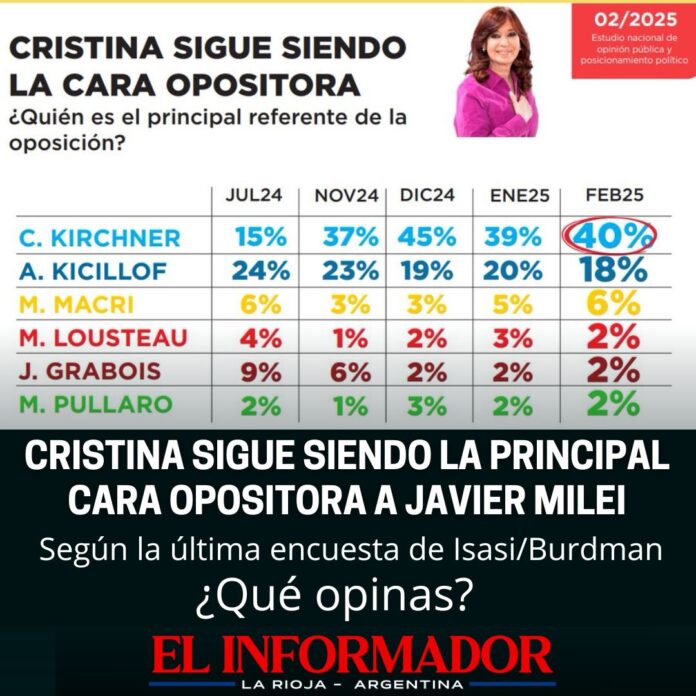 Inicio Destacadas Cristina sigue siendo la principal cara opositora a Javier MileiDestacadasCristina sigue siendo la principal cara opositora a Javier Milei marzo 4, 2025FacebookTwitterPinterestVKWhatsApp Artículos relacionadosMás del autorDetuvieron al hijastro del hombre de 88 años que fue encontrado sin vida en su casaYPF estabiliza el precio de la nafta por 45 días: No trasladará la suba del petróleoLa pobreza cayó en el segundo semestre y cerró el 2025 en 28,2%DEJA UNA RESPUESTA Cancelar respuestaPor favor ingrese su comentario! Por favor ingrese su nombre aquí ¡Has introducido una dirección de correo electrónico incorrecta!Por favor ingrese su dirección de correo electrónico aquí Guardar mi nombre, correo electrónico y sitio web en este navegador la próxima vez que comente.