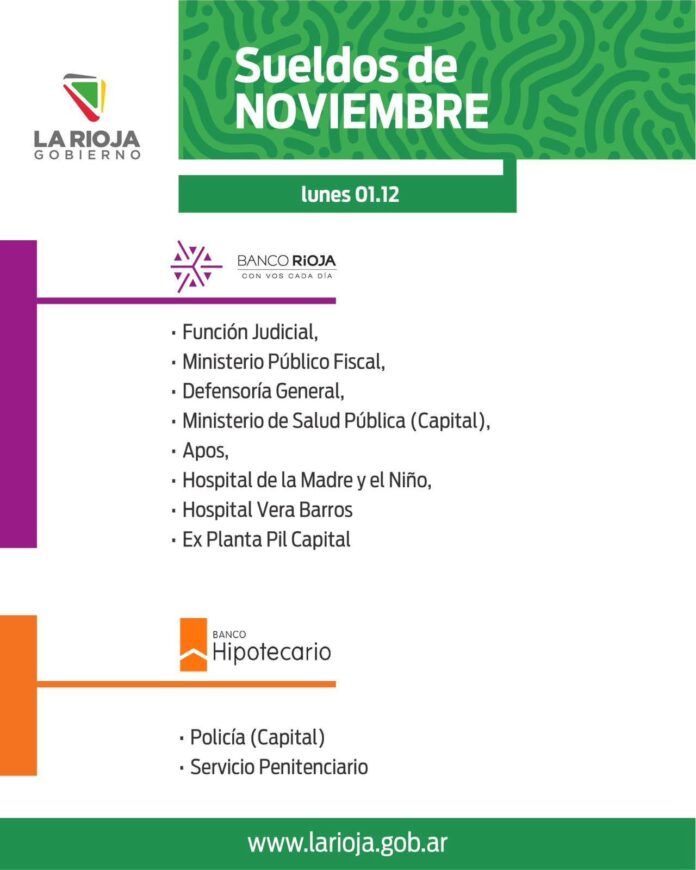 Inicio Local Cronograma de pago: Haberes noviembreLocalCronograma de pago: Haberes noviembre noviembre 28, 2025FacebookTwitterPinterestVKWhatsApp Artículos relacionadosMás del autorTrasladan a Nonogasta al alumno del Colegio 16 de Chilecito que ingresó armado a la InstituciónConcretaron jornada de formación sobre sistema acusatorio y régimen penal juvenil en ChilecitoRicardo Quintela tomó juramento a los nuevos Secretarios del Gabinete provincialDEJA UNA RESPUESTA Cancelar respuestaPor favor ingrese su comentario! Por favor ingrese su nombre aquí ¡Has introducido una dirección de correo electrónico incorrecta!Por favor ingrese su dirección de correo electrónico aquí Guardar mi nombre, correo electrónico y sitio web en este navegador la próxima vez que comente.