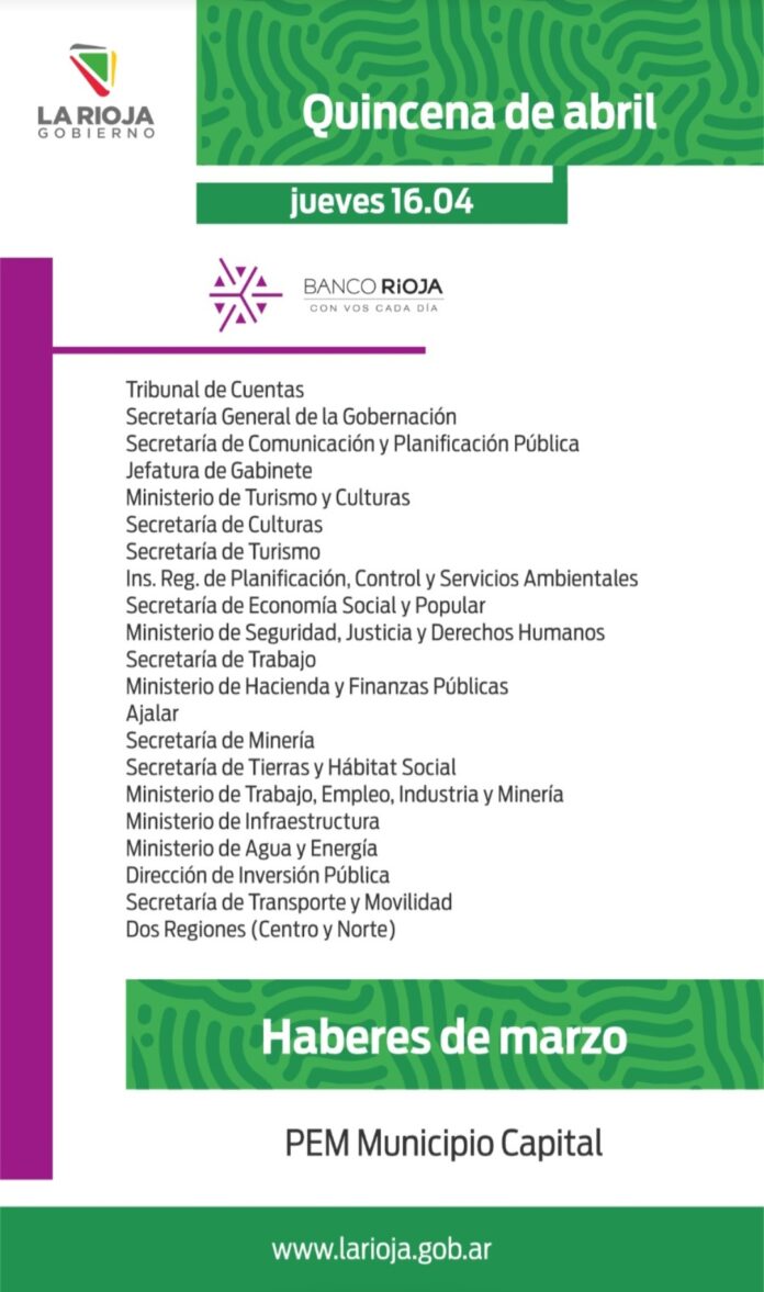 Inicio Local Cronograma de pago: QuincenaLocalCronograma de pago: Quincena abril 15, 2026FacebookTwitterPinterestVKWhatsApp Artículos relacionadosMás del autorGabriela Pedrali avanza sobre gestiones en materia de energíaAdvierten por crecidas de ríos que afectan la circulación en el oeste riojano«La Rioja se lleva en el corazón»: Soledad Pastorutti celebra sus 30 años recorriendo el paísDEJA UNA RESPUESTA Cancelar respuestaPor favor ingrese su comentario! Por favor ingrese su nombre aquí ¡Has introducido una dirección de correo electrónico incorrecta!Por favor ingrese su dirección de correo electrónico aquí Guardar mi nombre, correo electrónico y sitio web en este navegador la próxima vez que comente.