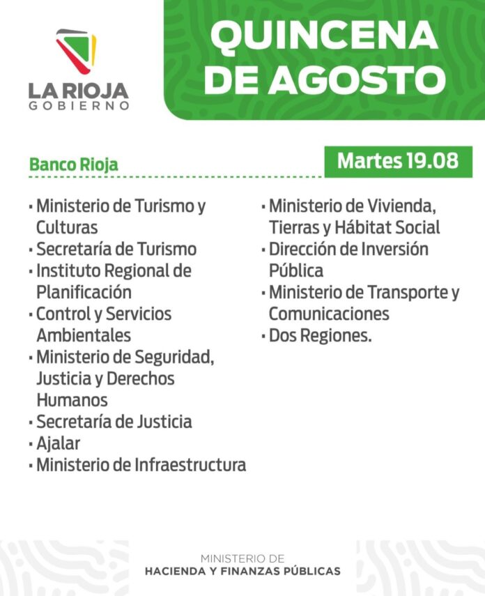 Inicio Local Cronograma de pago: Quincena agostoLocalCronograma de pago: Quincena agosto agosto 19, 2025FacebookTwitterPinterestVKWhatsApp Artículos relacionadosMás del autorEncontraron a un hombre de 86 años que llevaba meses muerto en su domicilio en Barrio FerroviarioLa Rioja homenajeó a los veteranos de Malvinas con el tradicional desfile del 2 de abrilEl COE inicia el operativo de Semana Santa en el Señor de la PeñaDEJA UNA RESPUESTA Cancelar respuestaPor favor ingrese su comentario! Por favor ingrese su nombre aquí ¡Has introducido una dirección de correo electrónico incorrecta!Por favor ingrese su dirección de correo electrónico aquí Guardar mi nombre, correo electrónico y sitio web en este navegador la próxima vez que comente.