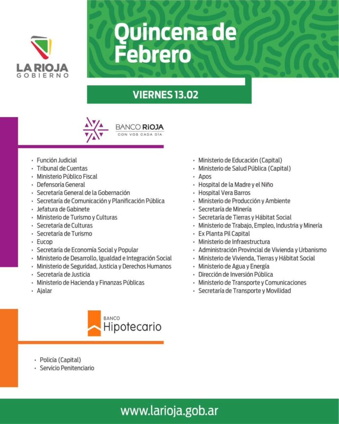 Inicio Local Cronograma de pago: Quincena febreroLocalCronograma de pago: Quincena febrero febrero 12, 2026FacebookTwitterPinterestVKWhatsApp Artículos relacionadosMás del autorLa Rioja homenajeó a los veteranos de Malvinas con el tradicional desfile del 2 de abrilEl COE inicia el operativo de Semana Santa en el Señor de la PeñaLa policía despliega un amplio operativo de seguridad por Semana SantaDEJA UNA RESPUESTA Cancelar respuestaPor favor ingrese su comentario! Por favor ingrese su nombre aquí ¡Has introducido una dirección de correo electrónico incorrecta!Por favor ingrese su dirección de correo electrónico aquí Guardar mi nombre, correo electrónico y sitio web en este navegador la próxima vez que comente.