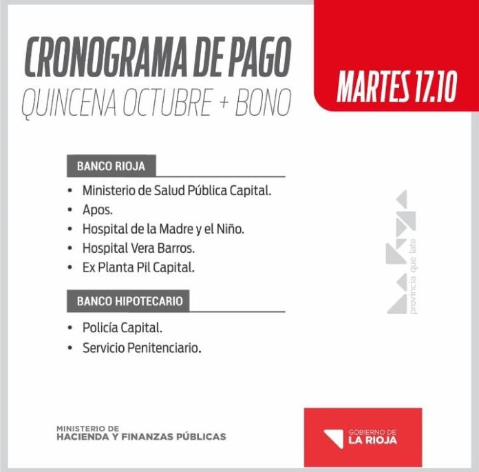 Inicio Destacadas CRONOGRAMA DE PAGO: QUINCENA OCTUBRE MÁS BONODestacadasCRONOGRAMA DE PAGO: QUINCENA OCTUBRE MÁS BONO octubre 12, 2023FacebookTwitterPinterestVKWhatsApp Artículos relacionadosMás del autorDos millones de personas desocupadas o trabajando en negro en ArgentinaDiputados pidieron interpelar a Karina Milei y a Adorni y exigen respuestas de Javier MileiWado de Pedro: «El Gobernador Quintela pelea todos los días para defender a su pueblo y los recursos que le corresponden»DEJA UNA RESPUESTA Cancelar respuestaPor favor ingrese su comentario! Por favor ingrese su nombre aquí ¡Has introducido una dirección de correo electrónico incorrecta!Por favor ingrese su dirección de correo electrónico aquí Guardar mi nombre, correo electrónico y sitio web en este navegador la próxima vez que comente.