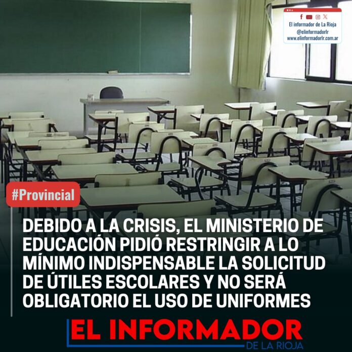 Inicio Local DEBIDO A LA CRISIS, EL MINISTERIO EDUCACIÓN PIDIÓ RESTRINGIR A LO MÍNIMO...LocalDEBIDO A LA CRISIS, EL MINISTERIO EDUCACIÓN PIDIÓ RESTRINGIR A LO MÍNIMO INDISPENSABLELA SOLICITUD DE ÚTILES ESCOLARES Y NO SERÁ OBLIGATORIO EL USO DE UNIFORME febrero 21, 2024FacebookTwitterPinterestVKWhatsApp Artículos relacionadosMás del autorEl Municipio avanza con la erradicación de basurales y limpieza de espacios verdesCronograma de pago: Quincena marzoHospital Vera Barros: Suspendieron la contratación de seguridad privada por falta de presupuestoDEJA UNA RESPUESTA Cancelar respuestaPor favor ingrese su comentario! Por favor ingrese su nombre aquí ¡Has introducido una dirección de correo electrónico incorrecta!Por favor ingrese su dirección de correo electrónico aquí Guardar mi nombre, correo electrónico y sitio web en este navegador la próxima vez que comente.