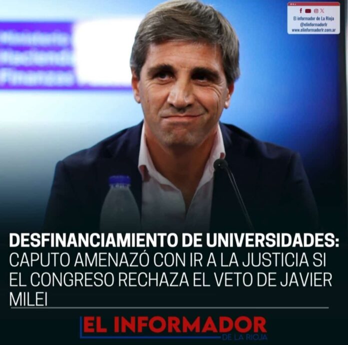 Inicio Destacadas DESFINANCIAMIENTO DE UNIVERSIDADES: Caputo amenazó con ir a la Justicia si el...DestacadasDESFINANCIAMIENTO DE UNIVERSIDADES: Caputo amenazó con ir a la Justicia si el Congreso rechaza el veto de Javier Milei octubre 7, 2024FacebookTwitterPinterestVKWhatsApp Artículos relacionadosMás del autorFranco Colapinto traerá la Formula 1 a las calles de Buenos Aires con un Road Show en PalermoAfirman que Adorni compró el departamento de Caballito en U$S230 mil dólares con un préstamo de dos jubiladasHallan el cuerpo sin vida del jóven que cayó al dique de OltaDEJA UNA RESPUESTA Cancelar respuestaPor favor ingrese su comentario! Por favor ingrese su nombre aquí ¡Has introducido una dirección de correo electrónico incorrecta!Por favor ingrese su dirección de correo electrónico aquí Guardar mi nombre, correo electrónico y sitio web en este navegador la próxima vez que comente.