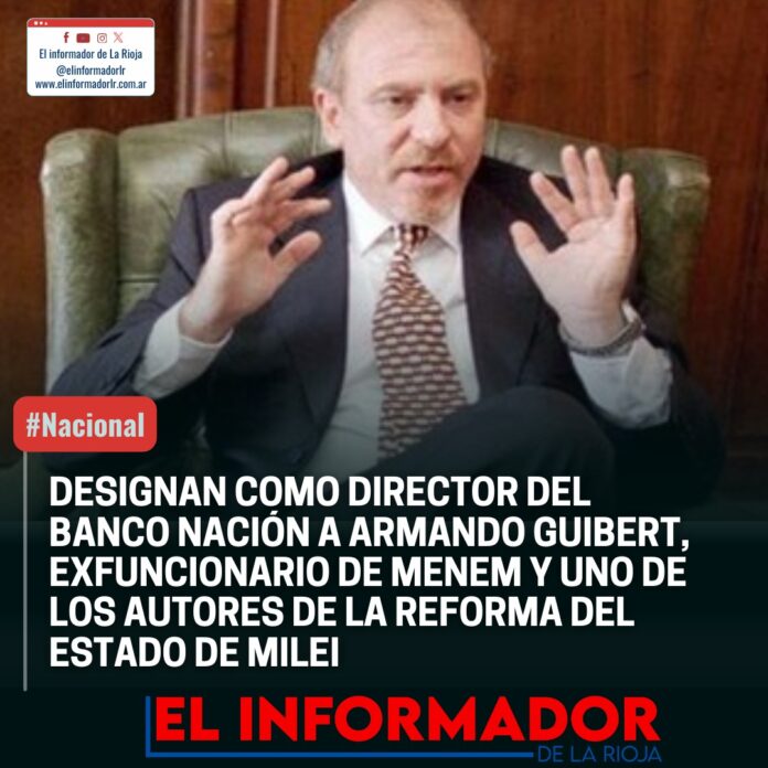 Inicio Nacional DESIGNAN COMO DIRECTOR DEL BANCO NACIÓN A ARMANDO GUIBERT, EX FUNCIONARIO DE...NacionalDESIGNAN COMO DIRECTOR DEL BANCO NACIÓN A ARMANDO GUIBERT, EX FUNCIONARIO DE MENEM Y UNO DE LOS AUTORES DE LA REFORMA DEL ESTADO DE MILEI febrero 18, 2024FacebookTwitterPinterestVKWhatsApp Artículos relacionadosMás del autorATE anunció un paro nacional para el 21 de abril en reclamo de aumento salarialTere Madera sobre Milei: «No puede haber respeto quien gobierna con odio e intolerancia»Una multitud participó de la vigilia en honor a los Héroes de MalvinasDEJA UNA RESPUESTA Cancelar respuestaPor favor ingrese su comentario! Por favor ingrese su nombre aquí ¡Has introducido una dirección de correo electrónico incorrecta!Por favor ingrese su dirección de correo electrónico aquí Guardar mi nombre, correo electrónico y sitio web en este navegador la próxima vez que comente.