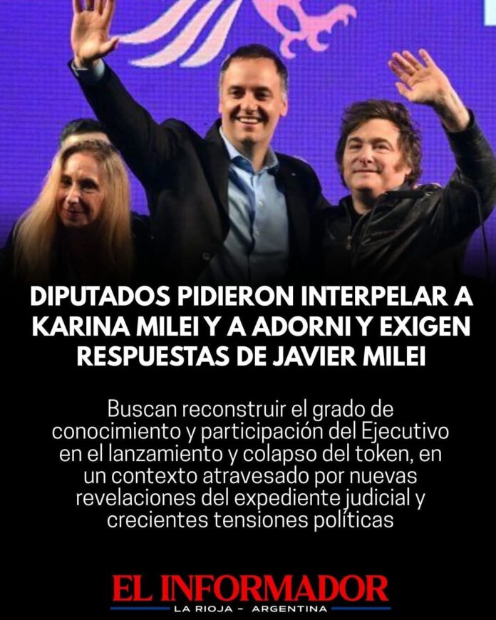 Inicio Destacadas Diputados pidieron interpelar a Karina Milei y a Adorni y exigen respuestas...DestacadasDiputados pidieron interpelar a Karina Milei y a Adorni y exigen respuestas de Javier Milei marzo 22, 2026FacebookTwitterPinterestVKWhatsApp Artículos relacionadosMás del autorWado de Pedro: «El Gobernador Quintela pelea todos los días para defender a su pueblo y los recursos que le corresponden»Advierten por despidos masivos en el servicio metereológico: «Es un peligro para la seguridad de la población»Javier Milei: «Más temprano o más tarde la inflación se va a terminar en la Argentina»DEJA UNA RESPUESTA Cancelar respuestaPor favor ingrese su comentario! Por favor ingrese su nombre aquí ¡Has introducido una dirección de correo electrónico incorrecta!Por favor ingrese su dirección de correo electrónico aquí Guardar mi nombre, correo electrónico y sitio web en este navegador la próxima vez que comente.