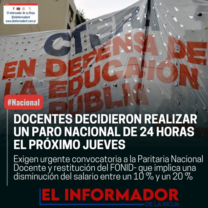 Inicio Destacadas DOCENTES DECIDIERON REALIZAR UN PARO NACIONAL DE 24 HORAS EL PRÓXIMO JUEVESDestacadasDOCENTES DECIDIERON REALIZAR UN PARO NACIONAL DE 24 HORAS EL PRÓXIMO JUEVES mayo 20, 2024FacebookTwitterPinterestVKWhatsApp Artículos relacionadosMás del autorYPF estabiliza el precio de la nafta por 45 días: No trasladará la suba del petróleoLa pobreza cayó en el segundo semestre y cerró el 2025 en 28,2%Franco Colapinto traerá la Formula 1 a las calles de Buenos Aires con un Road Show en PalermoDEJA UNA RESPUESTA Cancelar respuestaPor favor ingrese su comentario! Por favor ingrese su nombre aquí ¡Has introducido una dirección de correo electrónico incorrecta!Por favor ingrese su dirección de correo electrónico aquí Guardar mi nombre, correo electrónico y sitio web en este navegador la próxima vez que comente.