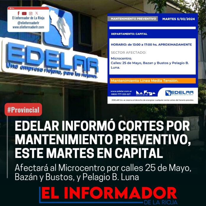 Inicio Servicios EDELAR INFORMÓ CORTES POR MANTENIMIENTO PREVENTIVO, ESTE MARTES EN CAPITALServiciosEDELAR INFORMÓ CORTES POR MANTENIMIENTO PREVENTIVO, ESTE MARTES EN CAPITAL marzo 4, 2024FacebookTwitterPinterestVKWhatsApp Artículos relacionadosMás del autorESTÉ LUNES Y MARTES EL REGISTRO CIVIL PERMANECERÁ CERRADO: VOLVERÁ A ATENDER EL MIÉRCOLESEDELAR INFORMÓ CORTES POR MANTENIMIENTO PREVENTIVO ESTE JUEVES EN CAPITALEDELAR INFORMÓ CORTES POR MANTENIMIENTO PREVENTIVO ESTE JUEVES EN CHILECITODEJA UNA RESPUESTA Cancelar respuestaPor favor ingrese su comentario! Por favor ingrese su nombre aquí ¡Has introducido una dirección de correo electrónico incorrecta!Por favor ingrese su dirección de correo electrónico aquí Guardar mi nombre, correo electrónico y sitio web en este navegador la próxima vez que comente.