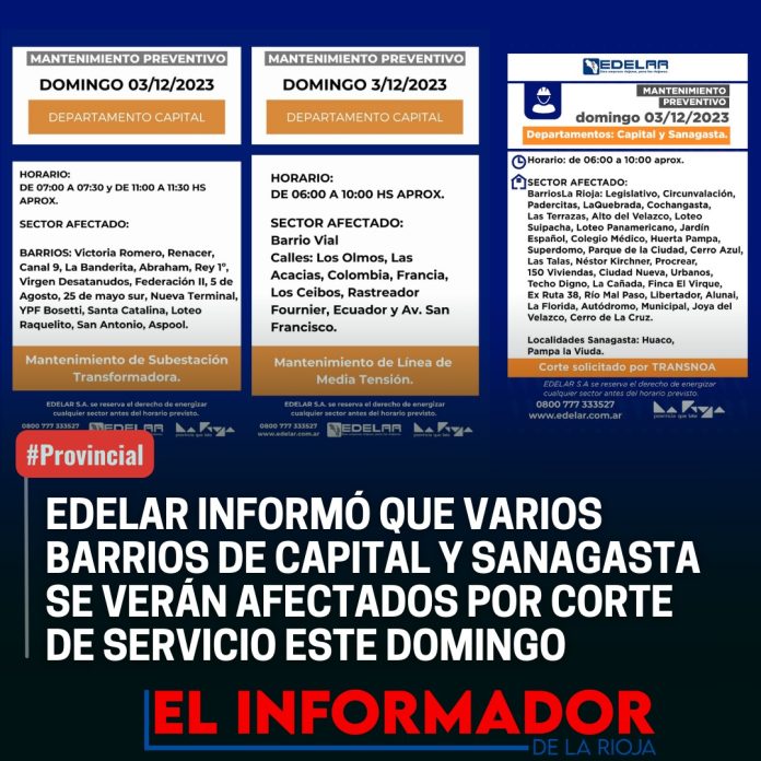 Inicio Servicios EDELAR INFORMÓ QUE VARIOS BARRIOS DE CAPITAL Y SANGASTA SE VERÁN AFECTADOS...ServiciosEDELAR INFORMÓ QUE VARIOS BARRIOS DE CAPITAL Y SANGASTA SE VERÁN AFECTADOS POR CORTE DE SERVICIO ESTE DOMINGO diciembre 1, 2023FacebookTwitterPinterestVKWhatsApp Artículos relacionadosMás del autorESTÉ LUNES Y MARTES EL REGISTRO CIVIL PERMANECERÁ CERRADO: VOLVERÁ A ATENDER EL MIÉRCOLESEDELAR INFORMÓ CORTES POR MANTENIMIENTO PREVENTIVO ESTE JUEVES EN CAPITALEDELAR INFORMÓ CORTES POR MANTENIMIENTO PREVENTIVO ESTE JUEVES EN CHILECITODEJA UNA RESPUESTA Cancelar respuestaPor favor ingrese su comentario! Por favor ingrese su nombre aquí ¡Has introducido una dirección de correo electrónico incorrecta!Por favor ingrese su dirección de correo electrónico aquí Guardar mi nombre, correo electrónico y sitio web en este navegador la próxima vez que comente.
