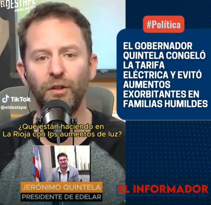 Inicio Destacadas EL GOBERNADOR QUINTELA CONGELÓ LA TARIFA ELÉCTRICA Y EVITÓ AUMENTOS EXORBITANTES EN...DestacadasEL GOBERNADOR QUINTELA CONGELÓ LA TARIFA ELÉCTRICA Y EVITÓ AUMENTOS EXORBITANTES EN FAMILIAS HUMILDES julio 17, 2024FacebookTwitterPinterestVKWhatsApp Artículos relacionadosMás del autorLa Justicia ordenó allanamientos y amplía la investigación por los vuelos de AdorniLa imágen más triste: Una jubilada comiendo de la basuraSergio Uñac quiere rearmar el peronismo de cara al 2027: «Es tiempo de tomar decisiones»DEJA UNA RESPUESTA Cancelar respuestaPor favor ingrese su comentario! Por favor ingrese su nombre aquí ¡Has introducido una dirección de correo electrónico incorrecta!Por favor ingrese su dirección de correo electrónico aquí Guardar mi nombre, correo electrónico y sitio web en este navegador la próxima vez que comente.