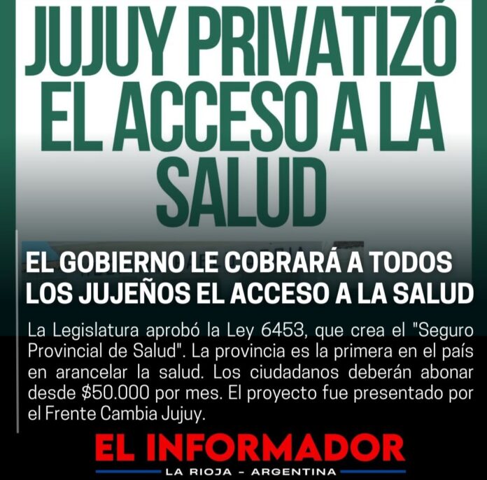 Inicio Destacadas El Gobierno les cobrará a todos los jujeños el acceso a la...DestacadasEl Gobierno les cobrará a todos los jujeños el acceso a la salud diciembre 19, 2024FacebookTwitterPinterestVKWhatsApp Artículos relacionadosMás del autorYPF estabiliza el precio de la nafta por 45 días: No trasladará la suba del petróleoLa pobreza cayó en el segundo semestre y cerró el 2025 en 28,2%Franco Colapinto traerá la Formula 1 a las calles de Buenos Aires con un Road Show en PalermoDEJA UNA RESPUESTA Cancelar respuestaPor favor ingrese su comentario! Por favor ingrese su nombre aquí ¡Has introducido una dirección de correo electrónico incorrecta!Por favor ingrese su dirección de correo electrónico aquí Guardar mi nombre, correo electrónico y sitio web en este navegador la próxima vez que comente.