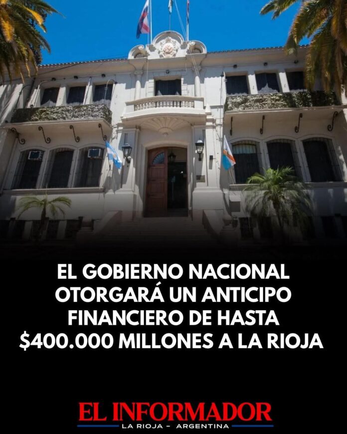 Inicio Destacadas El Gobierno Nacional otorgará un anticipo financiero de hasta de $400.000 millones...DestacadasLocalEl Gobierno Nacional otorgará un anticipo financiero de hasta de $400.000 millones a La Rioja abril 6, 2026FacebookTwitterPinterestVKWhatsApp Artículos relacionadosMás del autorSemana Santa en La RiojaLa Rioja solicitó $85.000 millones de adelanto de Coparticipación a la NaciónLa Rioja registró un 70% de ocupación hotelera en Semana SantaDEJA UNA RESPUESTA Cancelar respuestaPor favor ingrese su comentario! Por favor ingrese su nombre aquí ¡Has introducido una dirección de correo electrónico incorrecta!Por favor ingrese su dirección de correo electrónico aquí Guardar mi nombre, correo electrónico y sitio web en este navegador la próxima vez que comente.