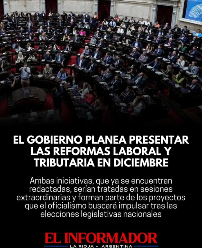 Inicio Destacadas El Gobierno planea presentar las reformas laboral y tributaria en diciembreDestacadasEl Gobierno planea presentar las reformas laboral y tributaria en diciembre octubre 29, 2025FacebookTwitterPinterestVKWhatsApp Artículos relacionadosMás del autorLa carne subió un 10% en marzo y recarga el IPC, como en febreroSegún la escribana, Adorni compró el departamento de Caballito en 12 cuotas y sin interesesJavier Milei volvió a atacar a los periodistas y aseguró que «la motosierra sigue encendida»DEJA UNA RESPUESTA Cancelar respuestaPor favor ingrese su comentario! Por favor ingrese su nombre aquí ¡Has introducido una dirección de correo electrónico incorrecta!Por favor ingrese su dirección de correo electrónico aquí Guardar mi nombre, correo electrónico y sitio web en este navegador la próxima vez que comente.