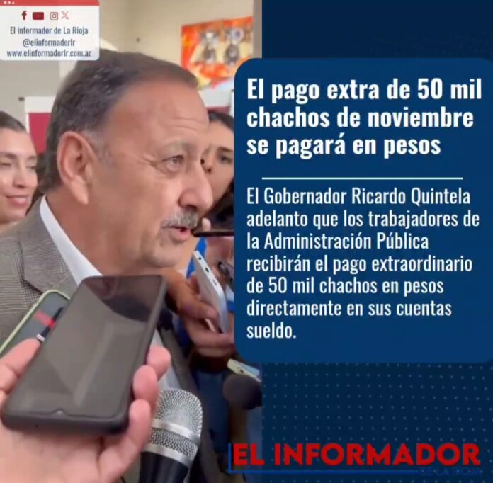 Inicio Destacadas El pago extra de 50.000 chachos de Noviembre se pagará en pesosDestacadasEl pago extra de 50.000 chachos de Noviembre se pagará en pesos noviembre 21, 2024FacebookTwitterPinterestVKWhatsApp Artículos relacionadosMás del autorYPF estabiliza el precio de la nafta por 45 días: No trasladará la suba del petróleoLa pobreza cayó en el segundo semestre y cerró el 2025 en 28,2%Franco Colapinto traerá la Formula 1 a las calles de Buenos Aires con un Road Show en PalermoDEJA UNA RESPUESTA Cancelar respuestaPor favor ingrese su comentario! Por favor ingrese su nombre aquí ¡Has introducido una dirección de correo electrónico incorrecta!Por favor ingrese su dirección de correo electrónico aquí Guardar mi nombre, correo electrónico y sitio web en este navegador la próxima vez que comente.