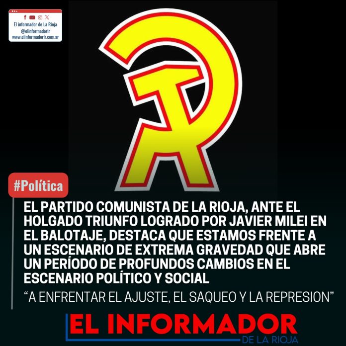 Inicio Política EL PARTIDO COMUNISTA DE LA RIOJA, ANTE EL HOLGADO TRIUNFO DE JAVIER...PolíticaEL PARTIDO COMUNISTA DE LA RIOJA, ANTE EL HOLGADO TRIUNFO DE JAVIER MILEI EN EL BALOTAGE, DESTACA QUE ESTAMOS FRENTE A UN ESCENARIO DE EXTREMA GRAVEDAD QUE ABRE UN PERÍODO DE PROFUNDOS CAMBIOS EN EL ESCENARIO POLÍTICO Y SOCIAL noviembre 23, 2023FacebookTwitterPinterestVKWhatsApp Artículos relacionadosMás del autorRicardo Quintela: «Argentina se construye con unidad y con un proyecto que defienda la nuestro»Intendentes denuncian «asfixia financiera» y reclaman mayor distribución de recursosFlorencia López: «Seguimos creando oportunidades para los jóvenes»DEJA UNA RESPUESTA Cancelar respuestaPor favor ingrese su comentario! Por favor ingrese su nombre aquí ¡Has introducido una dirección de correo electrónico incorrecta!Por favor ingrese su dirección de correo electrónico aquí Guardar mi nombre, correo electrónico y sitio web en este navegador la próxima vez que comente.