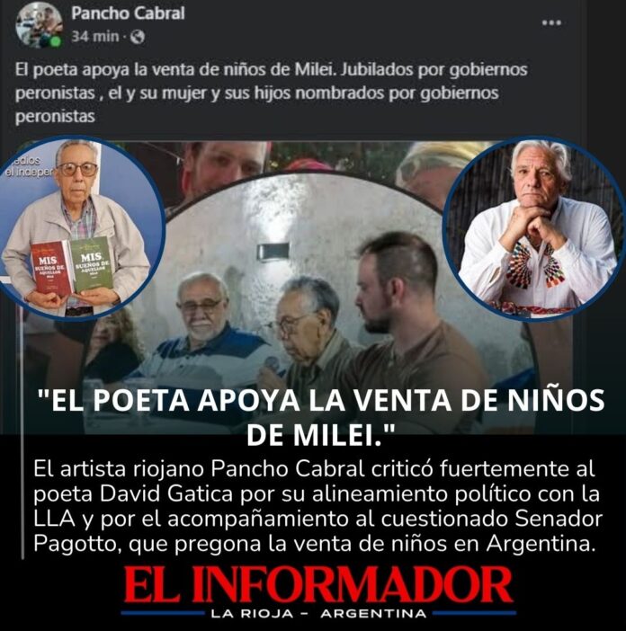 Inicio Local «El Poeta apoya la venta de niños de Milei»Local«El Poeta apoya la venta de niños de Milei» diciembre 30, 2024FacebookTwitterPinterestVKWhatsApp Artículos relacionadosMás del autorEncontraron a un hombre de 86 años que llevaba meses muerto en su domicilio en Barrio FerroviarioLa Rioja homenajeó a los veteranos de Malvinas con el tradicional desfile del 2 de abrilEl COE inicia el operativo de Semana Santa en el Señor de la PeñaDEJA UNA RESPUESTA Cancelar respuestaPor favor ingrese su comentario! Por favor ingrese su nombre aquí ¡Has introducido una dirección de correo electrónico incorrecta!Por favor ingrese su dirección de correo electrónico aquí Guardar mi nombre, correo electrónico y sitio web en este navegador la próxima vez que comente.