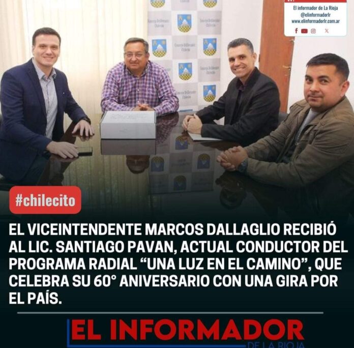 Inicio Local EL VICE INTENDENTE MARCOS DALLAGLIO RECIBIÓ AL LIC. SANTIAGO PAVAN, ACTUAL CONDUCTOR...LocalEL VICE INTENDENTE MARCOS DALLAGLIO RECIBIÓ AL LIC. SANTIAGO PAVAN, ACTUAL CONDUCTOR DEL PROGRAMA RADIAL «UNA LUZ EN EL CAMINO», QUE CELEBRA SU 60° ANIVERSARIO CON UNA GIRA POR EL PAÍS septiembre 20, 2024FacebookTwitterPinterestVKWhatsApp Artículos relacionadosMás del autorLa Rioja puso en funcionamiento tres nuevos Juzgados de FamiliaSe pondrá en marcha en La Rioja la diplomatura que permitirá formarse en Gestión Cultural ComunitariaArmando Molina participará del Encuentro del Concejo Federal de Intendentes de capitalesDEJA UNA RESPUESTA Cancelar respuestaPor favor ingrese su comentario! Por favor ingrese su nombre aquí ¡Has introducido una dirección de correo electrónico incorrecta!Por favor ingrese su dirección de correo electrónico aquí Guardar mi nombre, correo electrónico y sitio web en este navegador la próxima vez que comente.