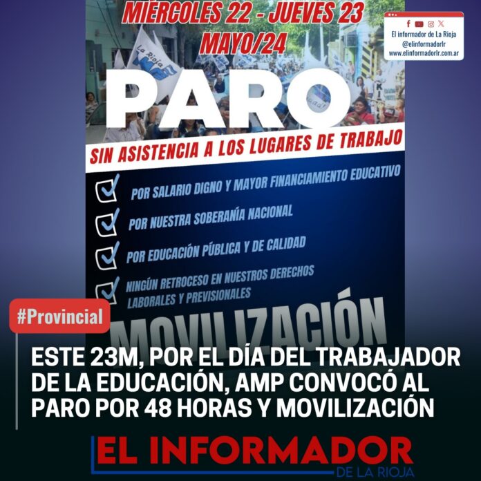 Inicio Destacadas ESTE 23M, POR EL DÍA DEL TRABAJADOR DE LA EDUCACIÓN AMP CONVOCÓ...DestacadasESTE 23M, POR EL DÍA DEL TRABAJADOR DE LA EDUCACIÓN AMP CONVOCÓ AL PARO POR 48 HORAS Y MOVILIZACIÓN mayo 17, 2024FacebookTwitterPinterestVKWhatsApp Artículos relacionadosMás del autorYPF estabiliza el precio de la nafta por 45 días: No trasladará la suba del petróleoLa pobreza cayó en el segundo semestre y cerró el 2025 en 28,2%Franco Colapinto traerá la Formula 1 a las calles de Buenos Aires con un Road Show en PalermoDEJA UNA RESPUESTA Cancelar respuestaPor favor ingrese su comentario! Por favor ingrese su nombre aquí ¡Has introducido una dirección de correo electrónico incorrecta!Por favor ingrese su dirección de correo electrónico aquí Guardar mi nombre, correo electrónico y sitio web en este navegador la próxima vez que comente.