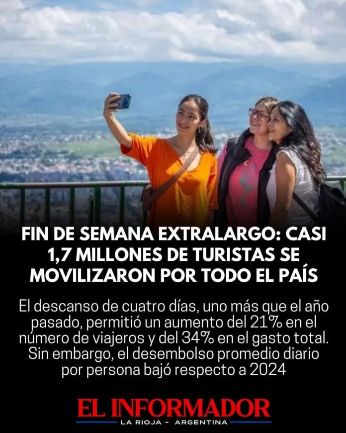 Inicio Destacadas Fin de semana extra largo: Casi 1.7 millones de turistas se movilizaron...DestacadasFin de semana extra largo: Casi 1.7 millones de turistas se movilizaron por todo el país noviembre 24, 2025FacebookTwitterPinterestVKWhatsApp Artículos relacionadosMás del autor¿Vivir para pagar? La deuda no bancaria ya asfixia a 6 de cada 10 hogaresAlberto Fernández, a un paso del juicio oral por violencia de género contra Fabiola YañezMadera y Alak analizaron la situación económica y coordinaron acciones para sostener fuentes de trabajoDEJA UNA RESPUESTA Cancelar respuestaPor favor ingrese su comentario! Por favor ingrese su nombre aquí ¡Has introducido una dirección de correo electrónico incorrecta!Por favor ingrese su dirección de correo electrónico aquí Guardar mi nombre, correo electrónico y sitio web en este navegador la próxima vez que comente.