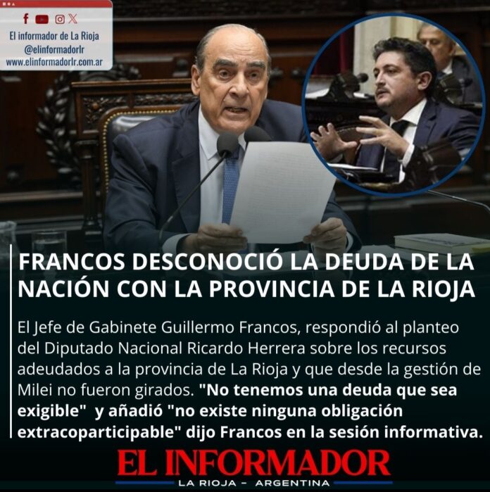 Inicio Destacadas Francos desconoció la deuda de la Nación con la provincia de La...DestacadasFrancos desconoció la deuda de la Nación con la provincia de La Rioja abril 17, 2025FacebookTwitterPinterestVKWhatsApp Artículos relacionadosMás del autorYPF estabiliza el precio de la nafta por 45 días: No trasladará la suba del petróleoLa pobreza cayó en el segundo semestre y cerró el 2025 en 28,2%Franco Colapinto traerá la Formula 1 a las calles de Buenos Aires con un Road Show en PalermoDEJA UNA RESPUESTA Cancelar respuestaPor favor ingrese su comentario! Por favor ingrese su nombre aquí ¡Has introducido una dirección de correo electrónico incorrecta!Por favor ingrese su dirección de correo electrónico aquí Guardar mi nombre, correo electrónico y sitio web en este navegador la próxima vez que comente.