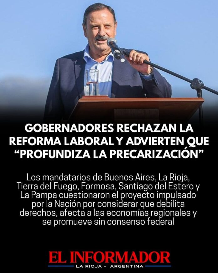 Inicio Política Gobernadores rechazan la reforma laboral y advierten que «profundiza la precarización»PolíticaGobernadores rechazan la reforma laboral y advierten que «profundiza la precarización» febrero 18, 2026FacebookTwitterPinterestVKWhatsApp Artículos relacionadosMás del autorEl funcionario echado por Sandra Pettovello tras tomar un crédito hipotecario defendió su gestión: «Lamento el desenlace»Ricardo Quintela: «Argentina se construye con unidad y con un proyecto que defienda la nuestro»Intendentes denuncian «asfixia financiera» y reclaman mayor distribución de recursosDEJA UNA RESPUESTA Cancelar respuestaPor favor ingrese su comentario! Por favor ingrese su nombre aquí ¡Has introducido una dirección de correo electrónico incorrecta!Por favor ingrese su dirección de correo electrónico aquí Guardar mi nombre, correo electrónico y sitio web en este navegador la próxima vez que comente.