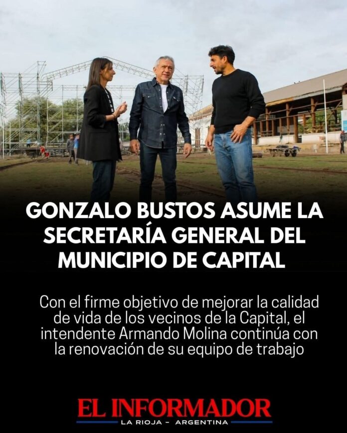 Inicio Local Gonzalo Bustos asume la Secretaria General del Municipio de CapitalLocalGonzalo Bustos asume la Secretaria General del Municipio de Capital enero 6, 2026FacebookTwitterPinterestVKWhatsApp Artículos relacionadosMás del autorChamical fue sede del inicio del ciclo lectivo 2026 con un fuerte de respaldo a la educación públicaLa Rioja presentó su potencial minero ante empresas e inversores en el Argentina Day-PDAC 2026El Gobierno provincial anunció un aumento del 12% en las guardias de saludDEJA UNA RESPUESTA Cancelar respuestaPor favor ingrese su comentario! Por favor ingrese su nombre aquí ¡Has introducido una dirección de correo electrónico incorrecta!Por favor ingrese su dirección de correo electrónico aquí Guardar mi nombre, correo electrónico y sitio web en este navegador la próxima vez que comente.
