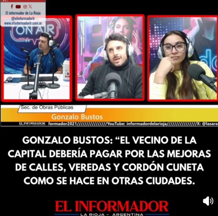 Inicio Local Gonzalo Bustos: «el vecino de la Capital debería pagar por las mejoras...LocalGonzalo Bustos: «el vecino de la Capital debería pagar por las mejoras de calles, veredas y cordón cuneta como se hace en otras ciudades» julio 14, 2025FacebookTwitterPinterestVKWhatsApp Artículos relacionadosMás del autorEncontraron a un hombre de 86 años que llevaba meses muerto en su domicilio en Barrio FerroviarioLa Rioja homenajeó a los veteranos de Malvinas con el tradicional desfile del 2 de abrilEl COE inicia el operativo de Semana Santa en el Señor de la PeñaDEJA UNA RESPUESTA Cancelar respuestaPor favor ingrese su comentario! Por favor ingrese su nombre aquí ¡Has introducido una dirección de correo electrónico incorrecta!Por favor ingrese su dirección de correo electrónico aquí Guardar mi nombre, correo electrónico y sitio web en este navegador la próxima vez que comente.