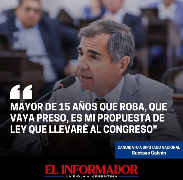Inicio Política Gustavo Galván: «Mayor de 15 años que roba, que vaya preso, es...PolíticaGustavo Galván: «Mayor de 15 años que roba, que vaya preso, es mi propuesta de Ley que llevaré al Congreso» octubre 9, 2025FacebookTwitterPinterestVKWhatsApp Artículos relacionadosMás del autorSegún la escribana, Adorni compró el departamento de Caballito en 12 cuotas y sin interesesJavier Milei volvió a atacar a los periodistas y aseguró que «la motosierra sigue encendida»Ley de Glaciares: La Libertad Avanza y aliados convirtieron en Ley la reforma de forma contundenteDEJA UNA RESPUESTA Cancelar respuestaPor favor ingrese su comentario! Por favor ingrese su nombre aquí ¡Has introducido una dirección de correo electrónico incorrecta!Por favor ingrese su dirección de correo electrónico aquí Guardar mi nombre, correo electrónico y sitio web en este navegador la próxima vez que comente.