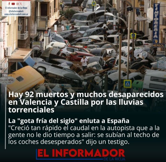 Inicio Sociedad Hay 92 muertos y muchos desaparecidos en Valencia y Castilla por las...SociedadHay 92 muertos y muchos desaparecidos en Valencia y Castilla por las lluvias torrenciales octubre 31, 2024FacebookTwitterPinterestVKWhatsApp Artículos relacionadosMás del autorLa imágen más triste: Una jubilada comiendo de la basuraLa Perla: Identificaron en Córdoba los restos de 12 víctimas de la última dictadura militarEl precio de la carne subió un 70% en los últimos 5 mesesDEJA UNA RESPUESTA Cancelar respuestaPor favor ingrese su comentario! Por favor ingrese su nombre aquí ¡Has introducido una dirección de correo electrónico incorrecta!Por favor ingrese su dirección de correo electrónico aquí Guardar mi nombre, correo electrónico y sitio web en este navegador la próxima vez que comente.