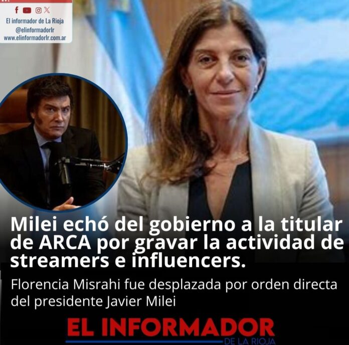 Inicio Destacadas Javier Milei echó del Gobierno a la titular de ARCA por grabar...DestacadasJavier Milei echó del Gobierno a la titular de ARCA por grabar la actividad de streamers e influerces diciembre 8, 2024FacebookTwitterPinterestVKWhatsApp Artículos relacionadosMás del autorYPF estabiliza el precio de la nafta por 45 días: No trasladará la suba del petróleoLa pobreza cayó en el segundo semestre y cerró el 2025 en 28,2%Franco Colapinto traerá la Formula 1 a las calles de Buenos Aires con un Road Show en PalermoDEJA UNA RESPUESTA Cancelar respuestaPor favor ingrese su comentario! Por favor ingrese su nombre aquí ¡Has introducido una dirección de correo electrónico incorrecta!Por favor ingrese su dirección de correo electrónico aquí Guardar mi nombre, correo electrónico y sitio web en este navegador la próxima vez que comente.
