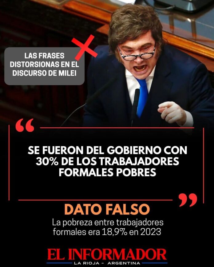Inicio Destacadas Javier Milei: «Se fueron del gobierno con 30% de los trabajadores formales...DestacadasJavier Milei: «Se fueron del gobierno con 30% de los trabajadores formales pobres» marzo 2, 2026FacebookTwitterPinterestVKWhatsApp Artículos relacionadosMás del autorRecortes en el servicio Metereológico Nacional: Confirman más de 140 despidos en el sectorEl Director de PAMI negó una crisis en el organismo y aseguró que los pagos «se estan ordenando»Golpe al narcotráfico en Chilecito: 8 demorados en el operativo «guanchineros»DEJA UNA RESPUESTA Cancelar respuestaPor favor ingrese su comentario! Por favor ingrese su nombre aquí ¡Has introducido una dirección de correo electrónico incorrecta!Por favor ingrese su dirección de correo electrónico aquí Guardar mi nombre, correo electrónico y sitio web en este navegador la próxima vez que comente.