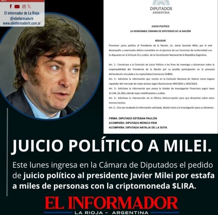 DestacadasActualizado: febrero 17, 2025JUICIO POLÍTICO A MILEIfebrero 17, 2025CuotaFacebookTwitterPinterestVKWhatsApp Mas NoticiasLocalSaul Narvaez - febrero 4, 2026Cronograma de pago: Haberes eneroLocalSaul Narvaez - febrero 3, 2026Cronograma de pago: Haberes eneroLocalSaul Narvaez - febrero 3, 2026Cronograma de pago: Haberes eneroCuotaFacebookTwitterPinterestVKWhatsApp Artículo anteriorSin el tuit de Javier Milei «No había negocio»Artículo siguienteQuintela pelea en la Nación por los derechos que les corresponden a los riojanos- Advertisement - DEJA UNA RESPUESTA Cancelar respuestaComentario:Por favor ingrese su comentario! Nombre:*Por favor ingrese su nombre aquí Correo electrónico:*¡Has introducido una dirección de correo electrónico incorrecta!Por favor ingrese su dirección de correo electrónico aquí Sitio web: Guardar mi nombre, correo electrónico y sitio web en este navegador la próxima vez que comente. Ultimas noticiasLocalSaul Narvaez - febrero 4, 2026Cronograma de pago: Haberes enero LocalCronograma de pago: Haberes enero Saul Narvaez - febrero 3, 2026 LocalCronograma de pago: Haberes enero Saul Narvaez - febrero 3, 2026 LocalIniciarán obras con fondos provinciales en el Departamento Ángel Vicente Peñaloza Saul Narvaez - enero 31, 2026 LocalRicardo Quintela: «La formación de jóvenes líderes es fundamental para el desarrollo de nuestra provincia» Saul Narvaez - enero 31, 2026 Esto tambien te puede interesarDeclaran la emergencia ignea en cuatro provincias por incendios en la Patagonia Destacadas Saul Narvaez - enero 30, 2026 Golpe a la jubilación mínima: El bono sigue congelado en $70.000 Destacadas Saul Narvaez - enero 30, 2026 Bullrich admitió que la emergencia por incendios podria sumarse al temario de extraordinarias Destacadas Saul Narvaez - enero 30, 2026 Milei volvió a criticar al kirchnerismo y sostuvo que «por suerte están de salida» Destacadas Saul Narvaez - enero 30, 2026 - Advertisement -