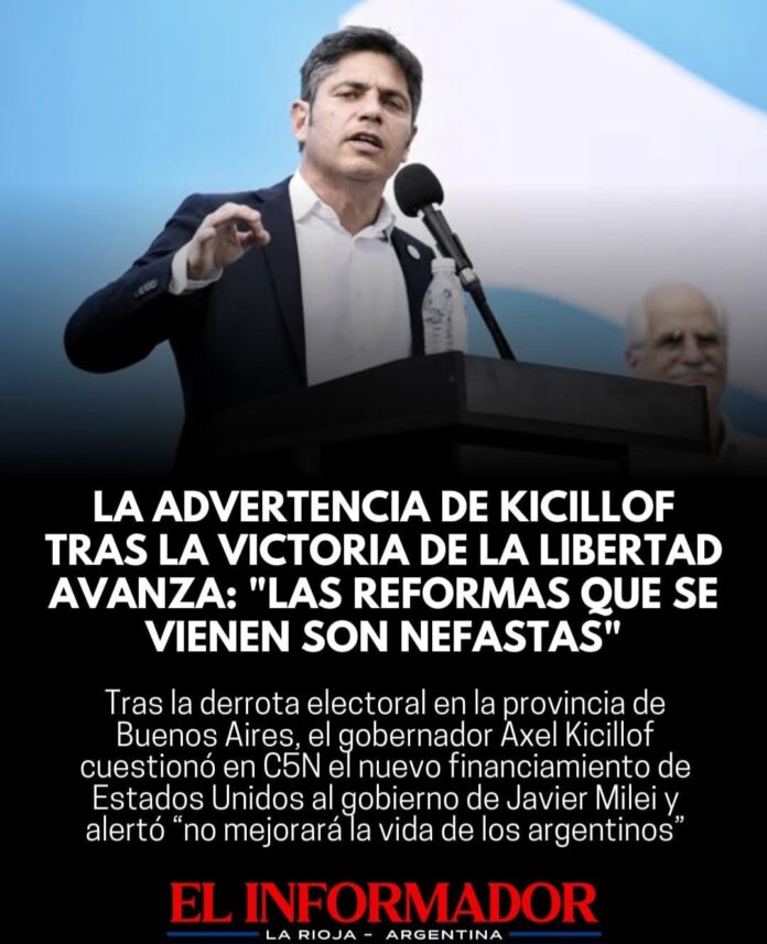 Inicio Destacadas La advertencia de Kicillof tras la victoria de La Libertad Avanza: «Las...DestacadasLa advertencia de Kicillof tras la victoria de La Libertad Avanza: «Las reformas que se vienen van a ser nefastas» octubre 29, 2025FacebookTwitterPinterestVKWhatsApp Artículos relacionadosMás del autorLa carne subió un 10% en marzo y recarga el IPC, como en febreroSegún la escribana, Adorni compró el departamento de Caballito en 12 cuotas y sin interesesJavier Milei volvió a atacar a los periodistas y aseguró que «la motosierra sigue encendida»DEJA UNA RESPUESTA Cancelar respuestaPor favor ingrese su comentario! Por favor ingrese su nombre aquí ¡Has introducido una dirección de correo electrónico incorrecta!Por favor ingrese su dirección de correo electrónico aquí Guardar mi nombre, correo electrónico y sitio web en este navegador la próxima vez que comente.